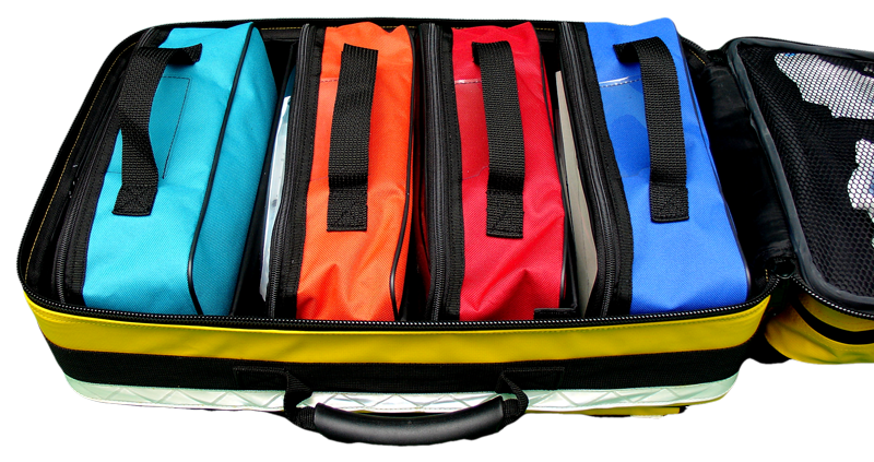 Professional Fire Rescue Kit dilengkapi dengan bantalan sistem backpack agar nyaman digendong. Dibuat dari bahan 'tyrpol' yang kuat, water proof dan sangat mudah dibersihkan dari noda. Kit ini ideal untuk penangan darurat medis di area yang sempit, seperti pada saat kebakaran. Tas berwarna mencolok dan dapat dijinjing vertical, horizontal dan digendong.