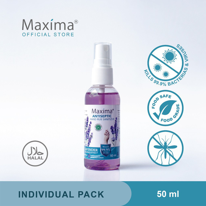 KEMENKES RI AKD 20903021249Maxima Antiseptic Hand Rub Sanitizer adalah High Level Disinfectan tanpa air yang telah teruji di lab Mikrobiologi Institut Teknologi Bandung (ITB), efektif membunuh berbagai bakteri dan jamur dalam waktu 8 detik, menguap dengan cepat, meninggalkan wangi lembut yang sergar dan terasa nyaman ditangan, dan melindungi tangan dari bakteri dan jamur selama 4 Jam setelah digunakan.