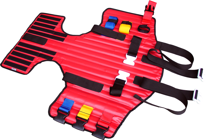 Item No : IMM 121 RDKED (Kendrik Extraction device) memiliki serangkaian instrumen yang dirakit sebentuk jaket nylon yang memungkinkan tulang leher dan tulang punggung korban tetap pada posisi yang benar dan aman saat evakuasi korban kecelakaan.