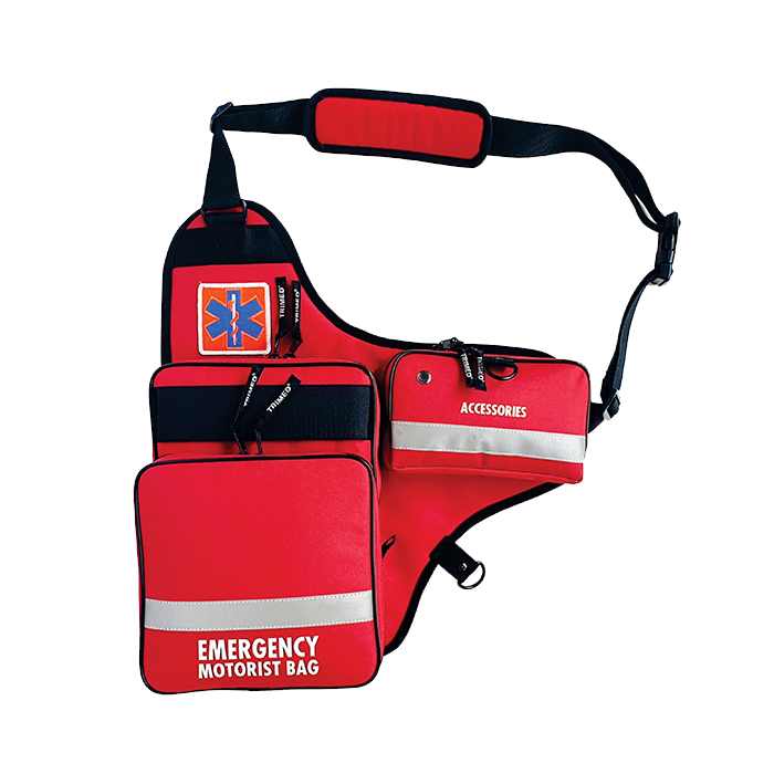 Item No : EMB 171 RDEmergency Motorist Bag didesain sebagai tas untuk digunakan oleh para praktisi medis bermotor untuk membawa peralatan kesehatan dan persediaan kelengkapan pertolongan pada kunjungan pasien di rumah, sehingga memberikan kemudahan dan kenyamanan dalam mereka bermanuver dalam kendaraannya di jalan atau gang sempit sekalipun saat bertugas. Tas ini sangat menarik desainnya dan dibuat dari bahan polyamide 600D warna merah yang kuat dan tahan air, dengan print putih menyolok 'Emergency Motorist Bag', juga dilengkapi dengan reflective tape 3M sehingga mudah dilihat dalam kegelapan (glowing in the dark). Tersedia Velcro part lebar 5 cm untuk menulis nama pemiliknya.
